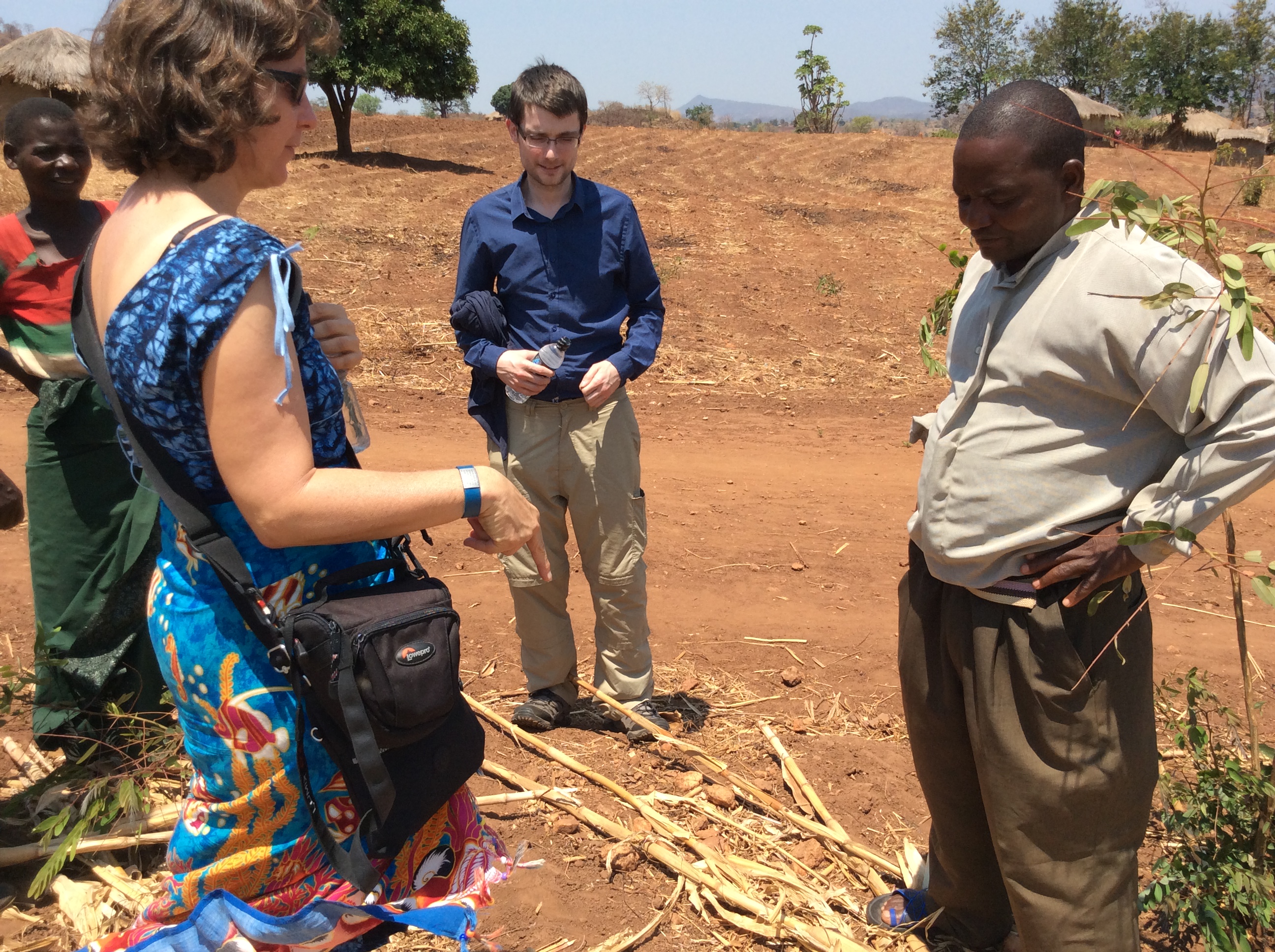 Dr. Barbara Adolph talking to a lead farmer in Mwansambo EPA about conservation agricultural practices in his field.