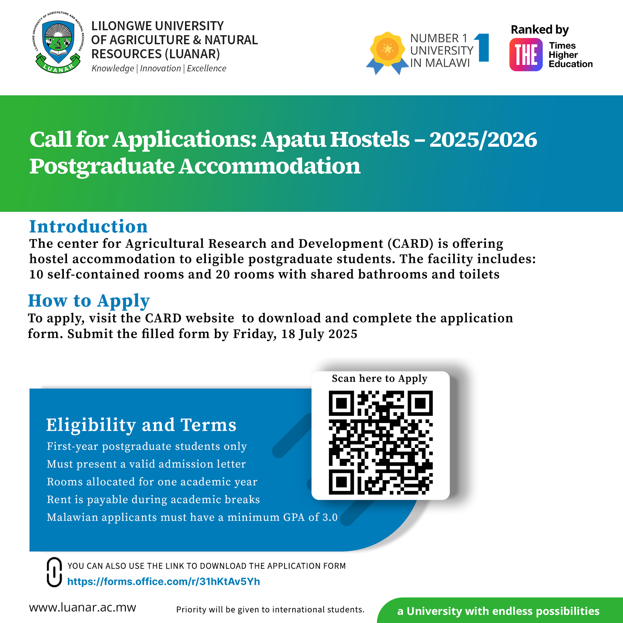 2025 - 2026 Academic Year Postgraduate Students' Accommodation at APATU